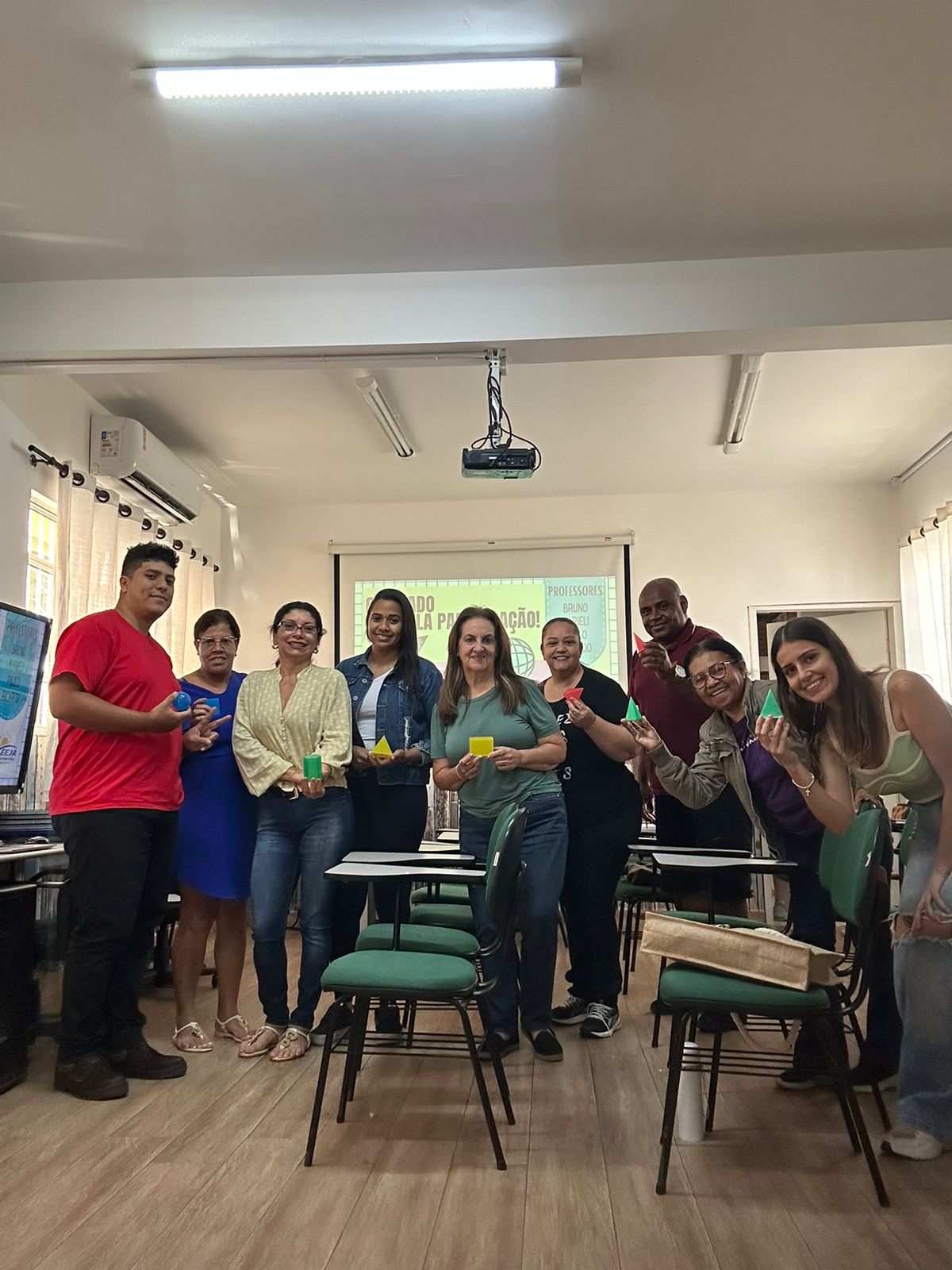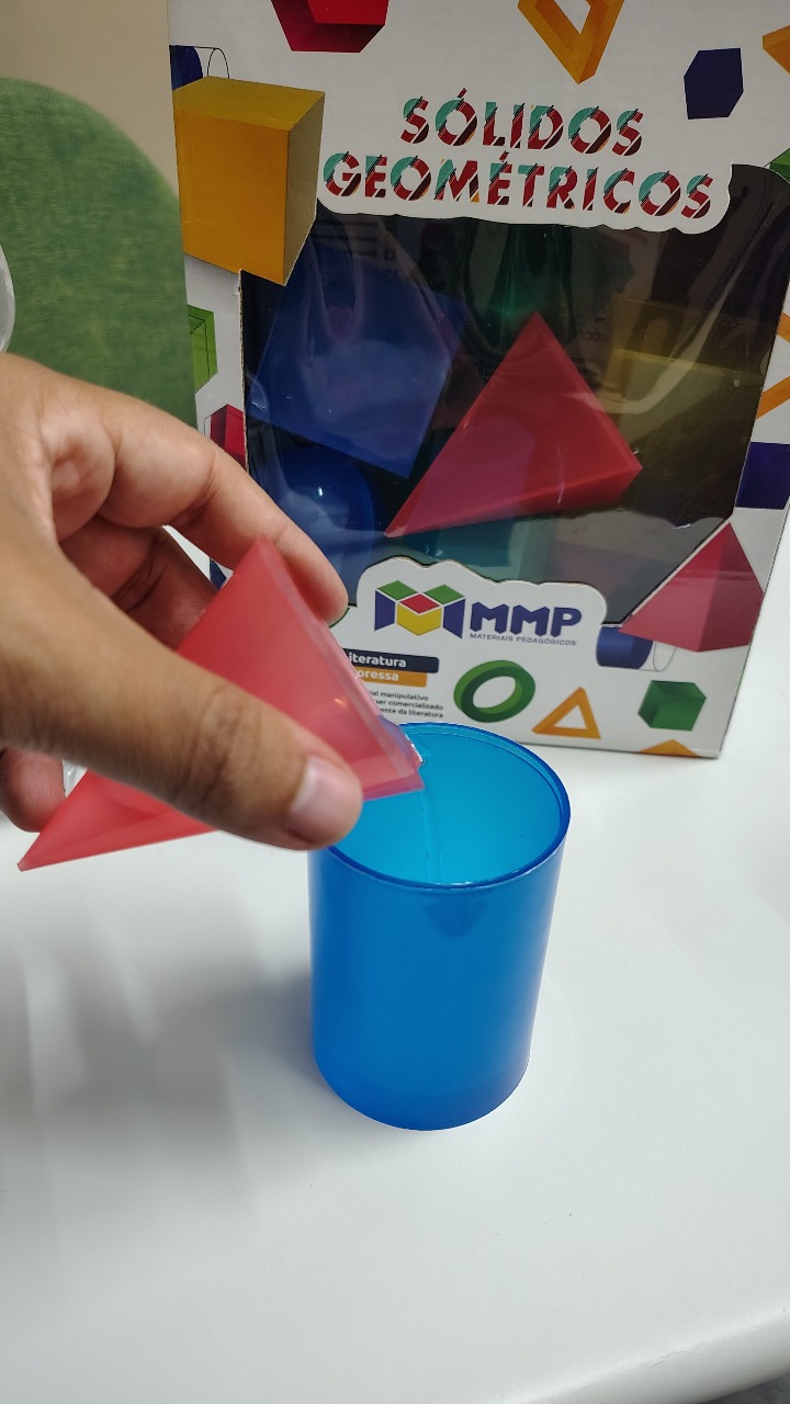 A oficina Corpos Redondos introduziu os alunos aos conceitos de polígonos, curvas, poliedros e aos principais corpos redondos, destacando características e diferenças entre essas estruturas geométricas. Em seguida, os estudantes manusearam sólidos geométricos reais, observando formas, proporções e relações métricas; entre elas, a demonstração prática de que o volume de um cilindro comporta aproximadamente três volumes de um cone de mesma altura, utilizando água para evidenciar visualmente essa relação. Para concluir de forma leve e interativa, realizamos uma gamificação no Kahoot, revisando os conteúdos e reforçando a aprendizagem por meio de uma dinâmica participativa.