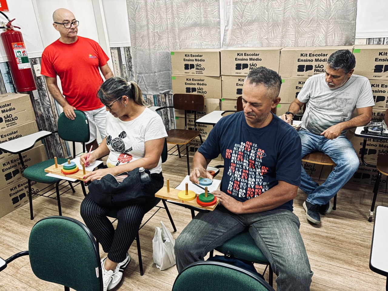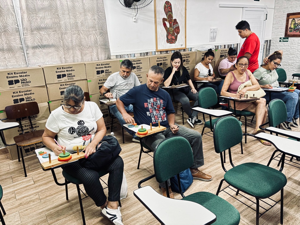 Foi realizada na sexta-feira as 11:30 horas a oficina sobre a Torre de Hanoi. Explicamos sobre a lenda, o desafio do quebra cabeça e ainda foi dada uma aula sobre Potência para que os estudantes descobrissem o número de de quantidades de movimentos para cada quantidade de discos. Os estudantes praticaram jogando e ao final entregaram um relatório.