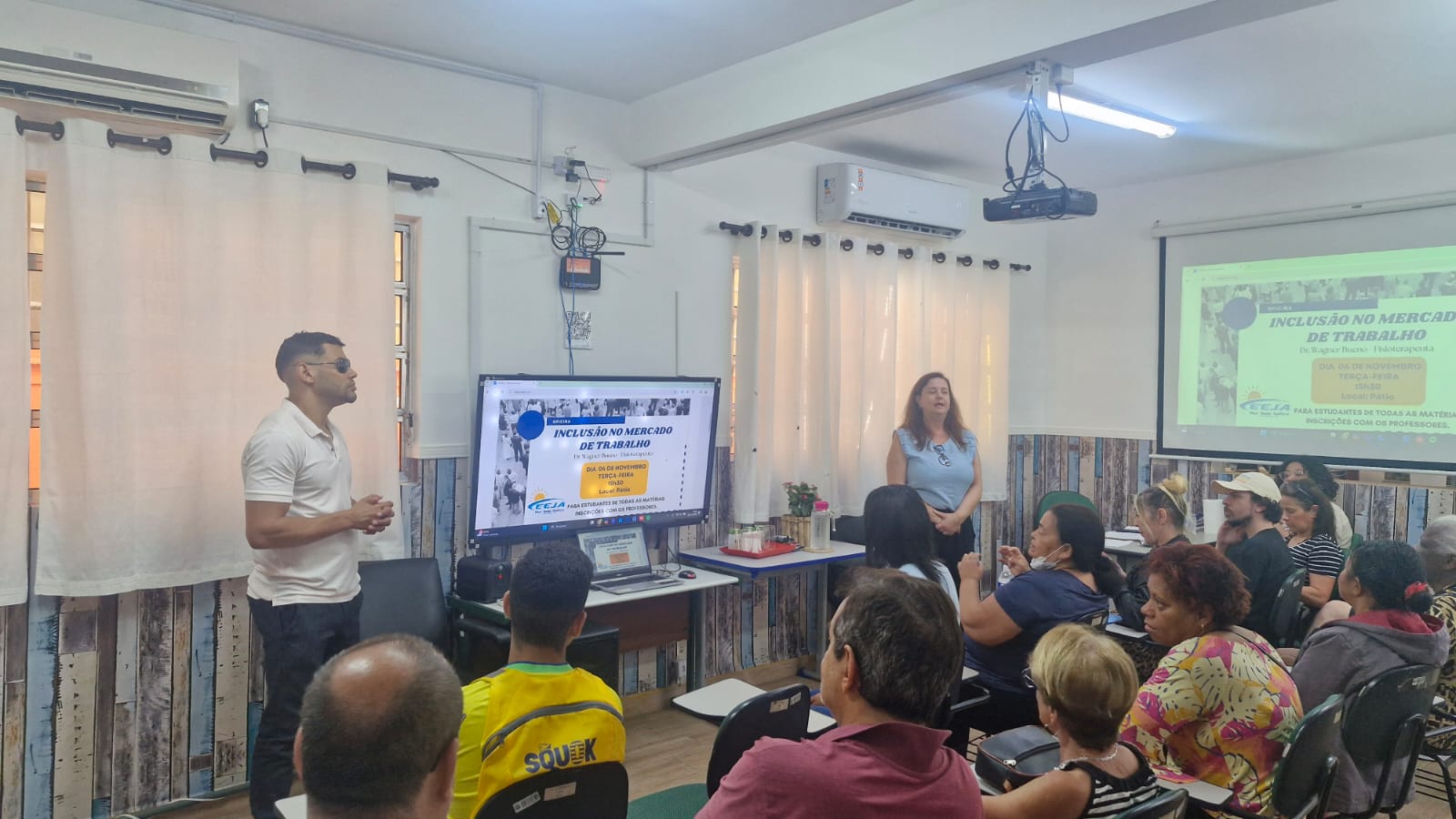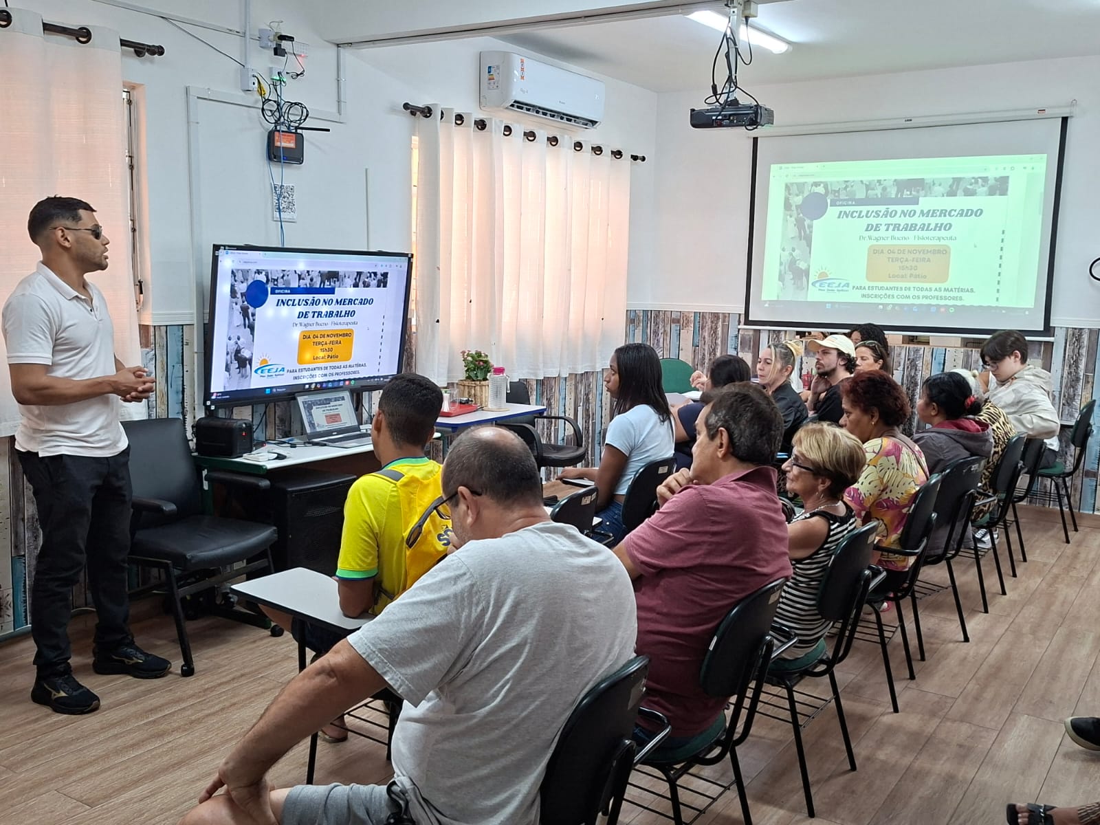 Nesse dia, a Escola recebeu a palestra "Inclusão no Mercado de Trabalho", que reuniu os estudantes para discutir a importância e os desafios de um ambiente de trabalho mais inclusivo.