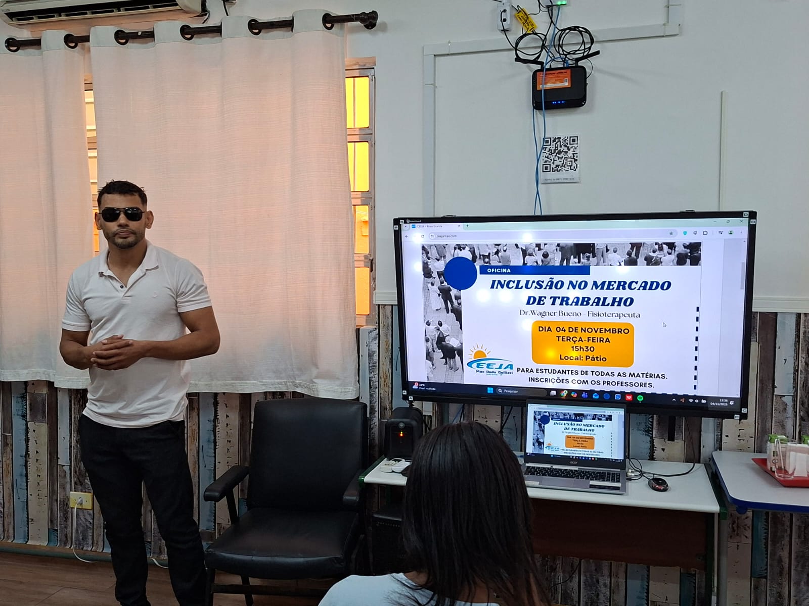 Nesse dia, a Escola recebeu a palestra "Inclusão no Mercado de Trabalho", que reuniu os estudantes para discutir a importância e os desafios de um ambiente de trabalho mais inclusivo.