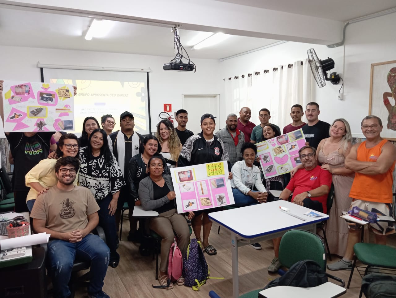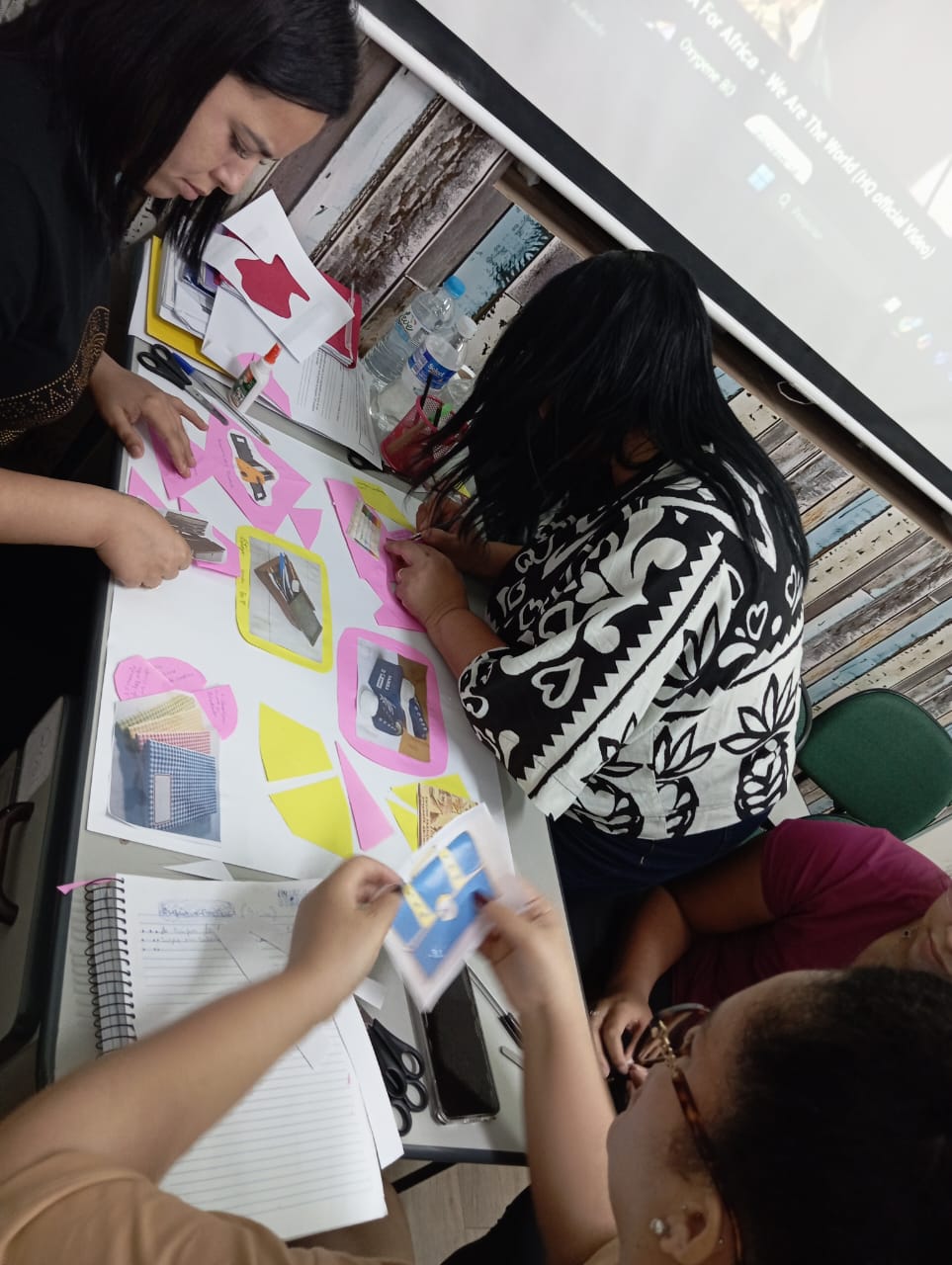 Como parte prática houve interação entre grupos de alunos para que criassem um cartaz reflexivo sobre a escola da sua infância.
