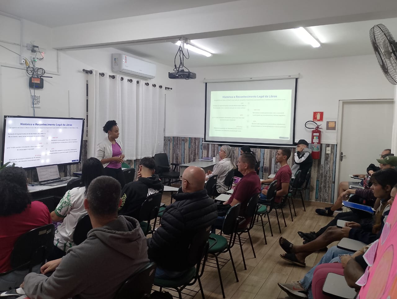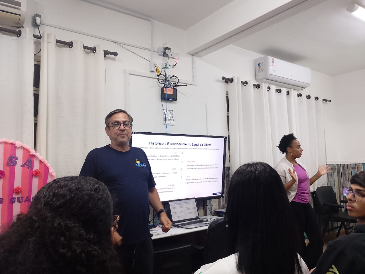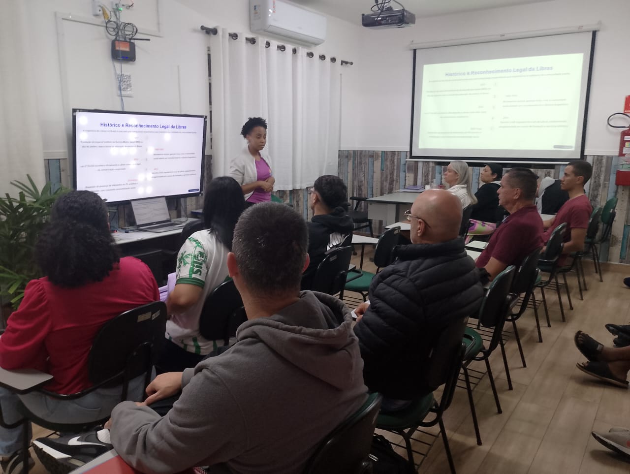 A Oficina de Libras foi um sucesso! Iniciamos com uma rica história, desde as origens da Língua Brasileira de Sinais até os dias atuais, destacando a importância da inclusão e da comunicação acessível.