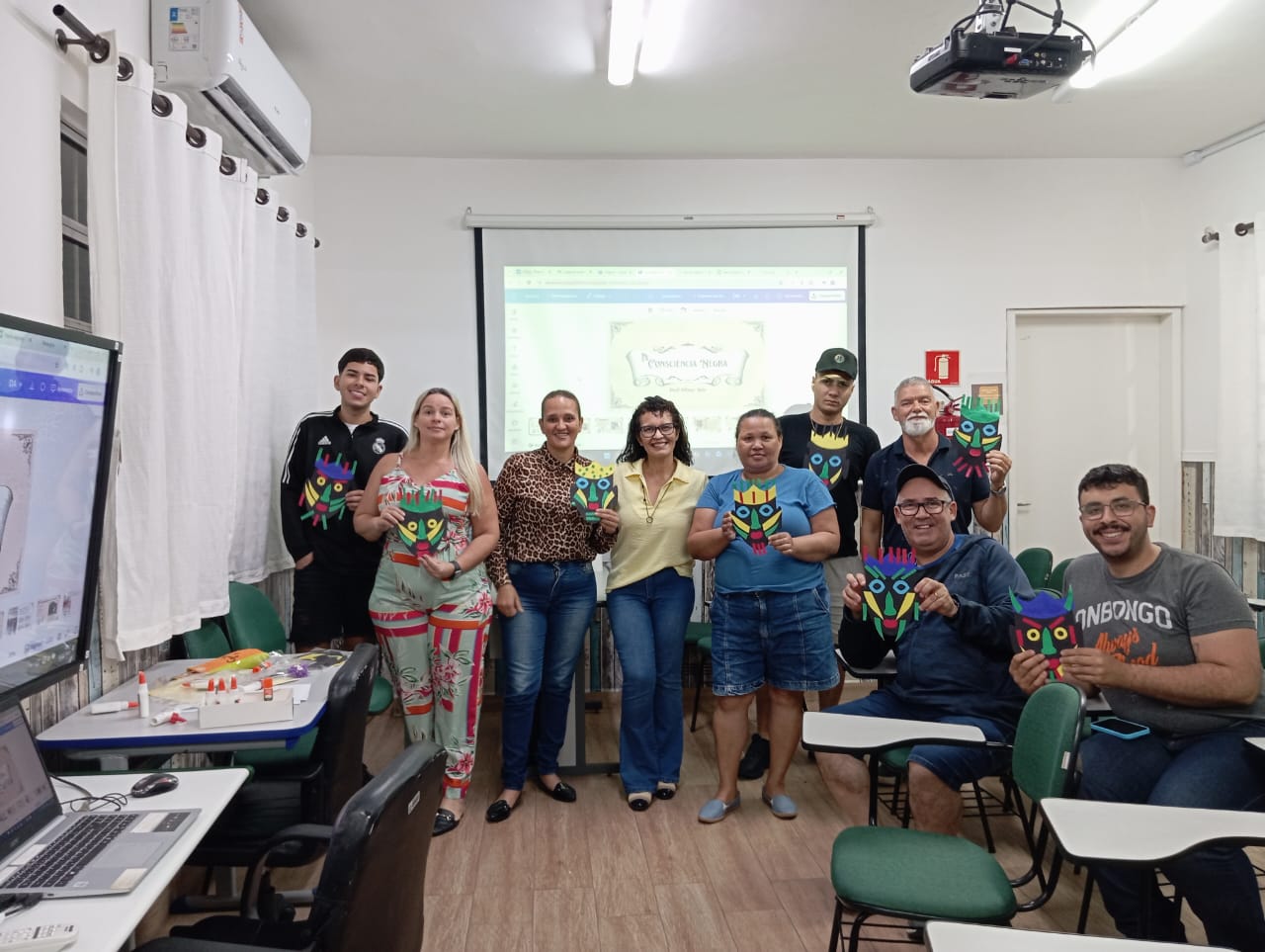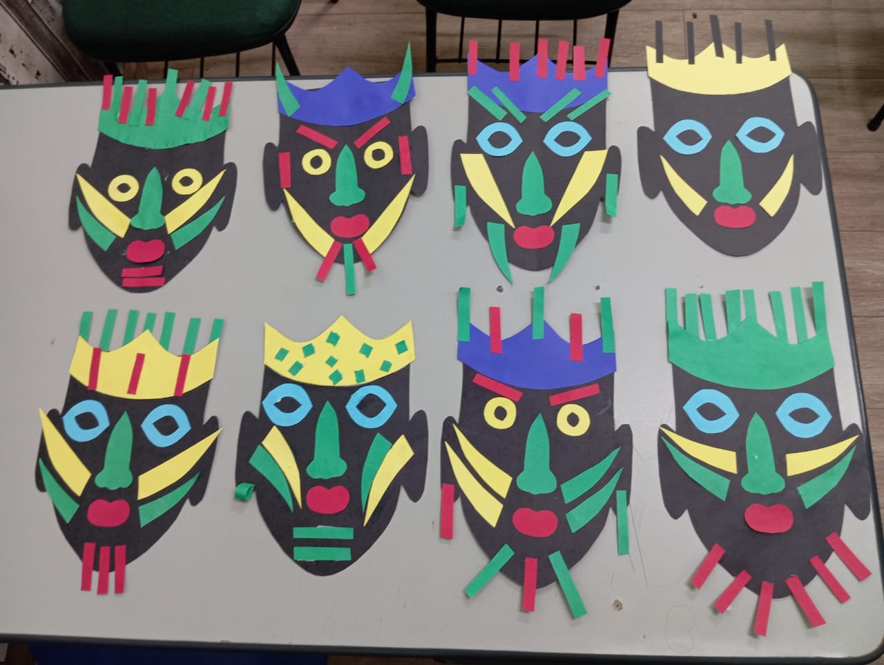 A oficina teve como tema principal dia da Consciência Negra, como forma de reflexão sobre a posição dos negros na sociedade. Como prática houve a confecção de máscaras africanas que mostrou-se uma atividade rica em conteúdo cultural, artístico e educativo. A prática permitiu aos participantes vivenciar processos criativos inspirados em tradições africanas, reforçando o respeito e a valorização das raízes culturais que influenciam diretamente a sociedade brasileira.