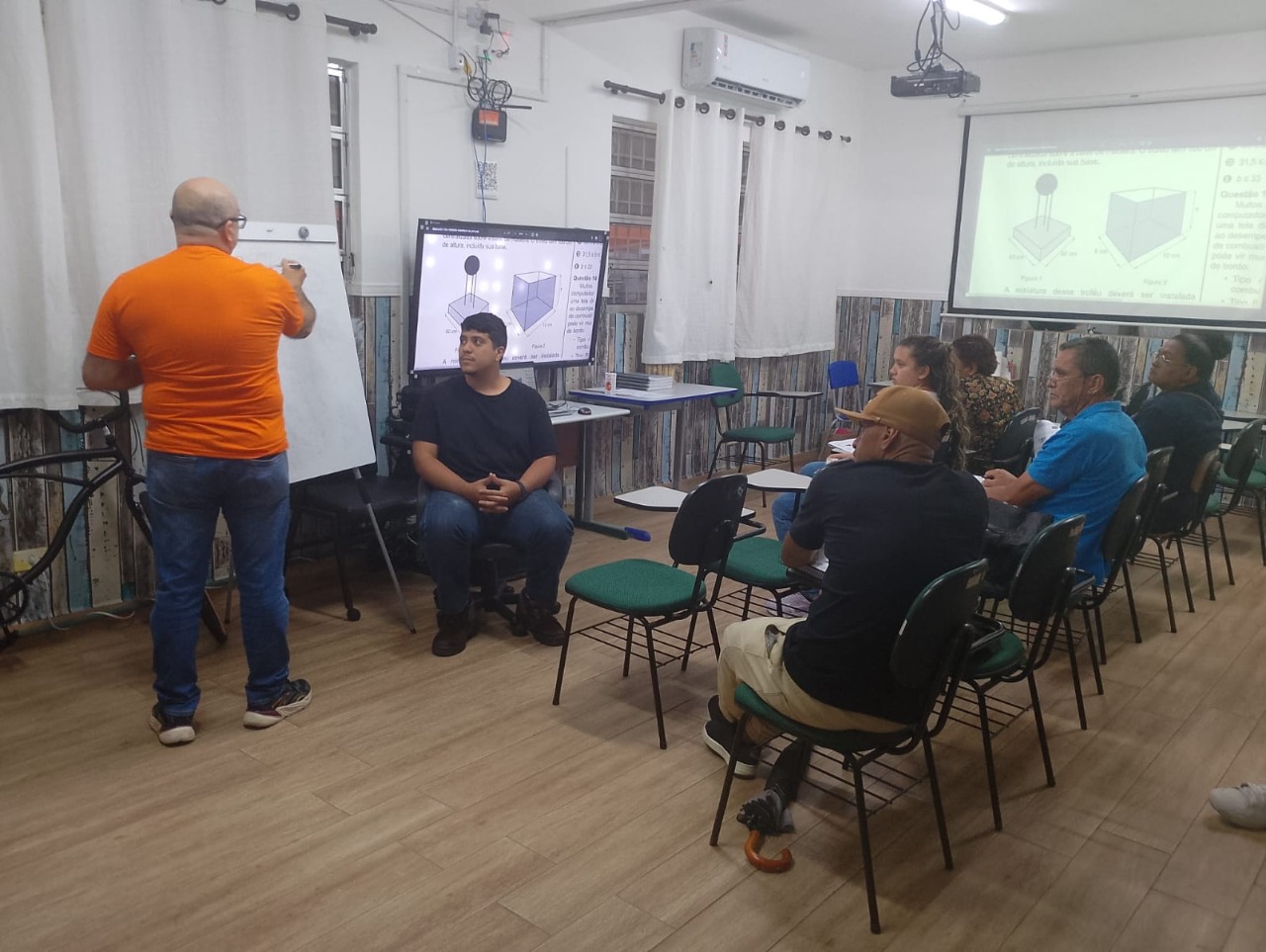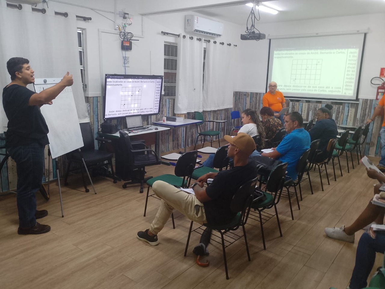 Nesse dia no Pátio da escola os professores de matemática realizaram um simulado para o ENEM com orientações importantes e resolução de algumas questões para os estudantes que vão realizar o exame e também aqueles que irão participar no futuro.