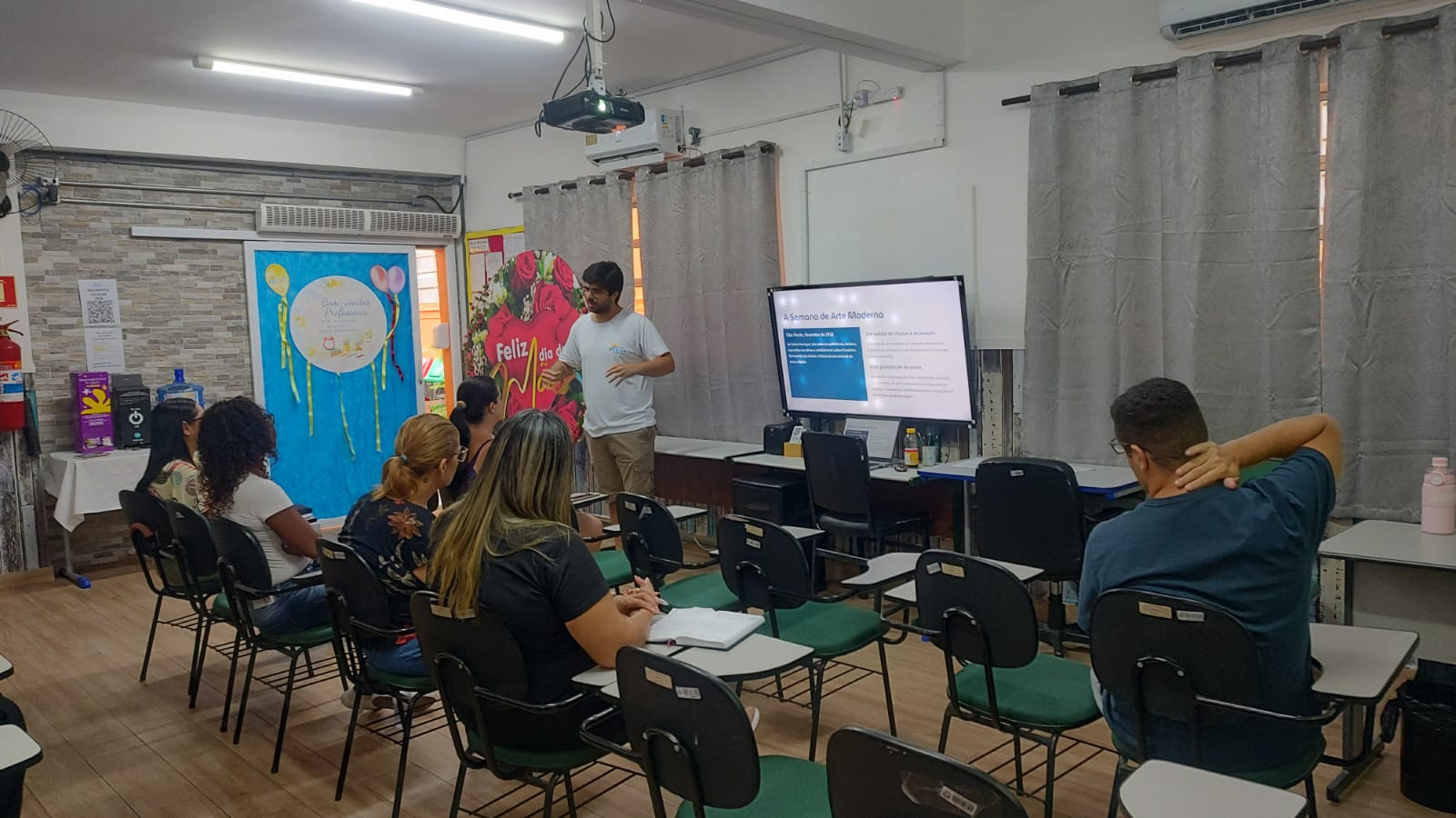A oficina consistiu em uma exposição do Modernismo no Brasil, abordando desde o contexto histórico até leitura de obras, visando dar ao estudante uma visão panorâmica desse importante movimento literário.