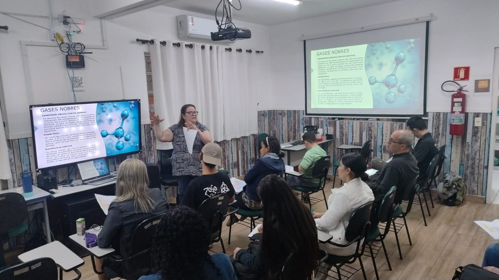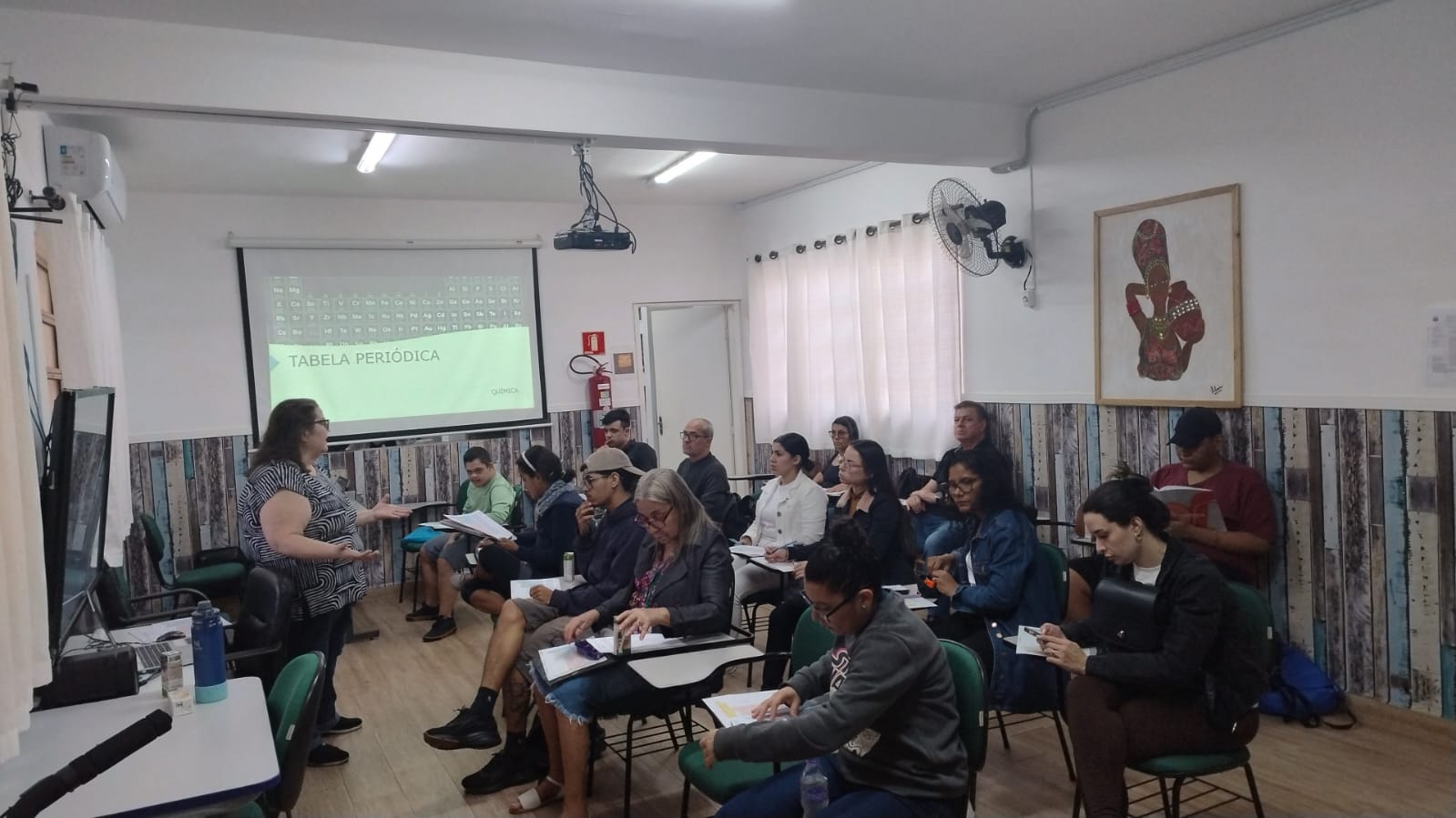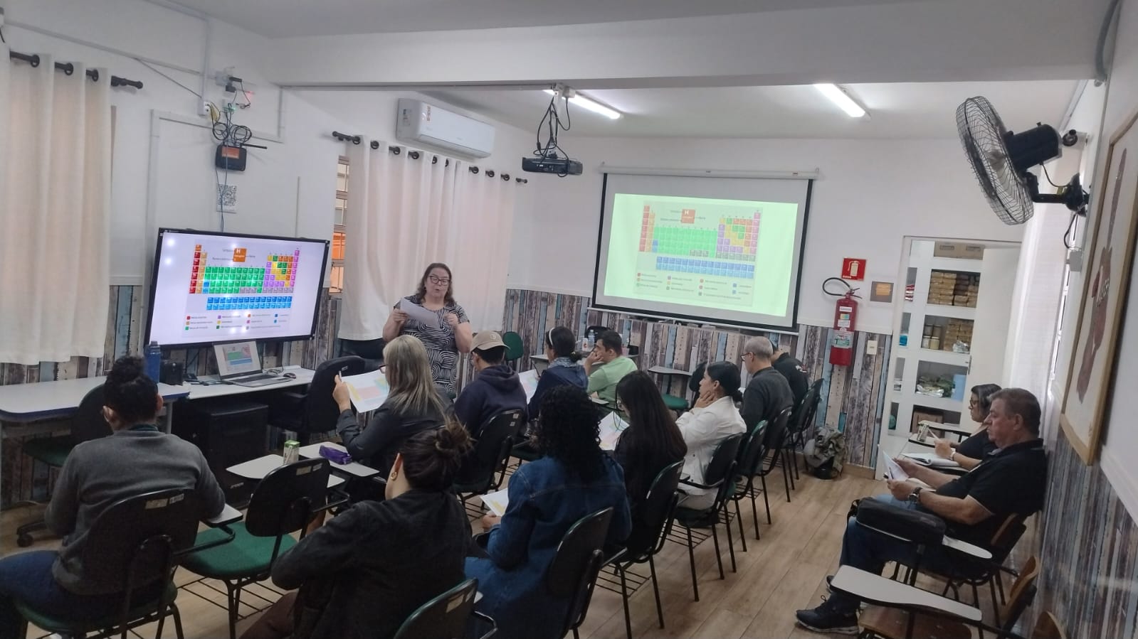 Nesse dia a professora Célia, do componente curricular Química realizou uma oficina sobre a Tabela Periódica. A Tabela Periódica é um instrumento muito importante para o conhecimento científico e os estudantes tiveram a oportunidade de conhecer mais e se familiarizar com ela.