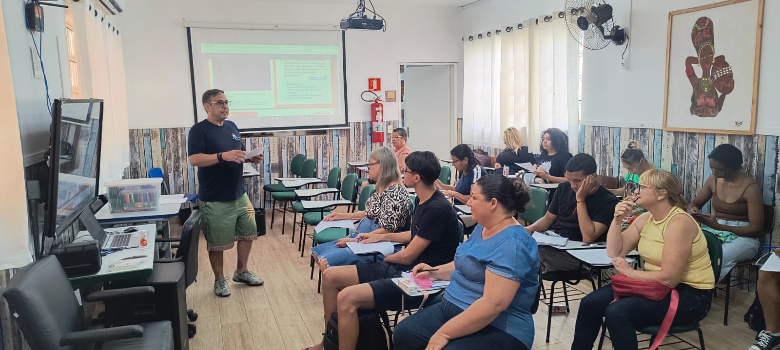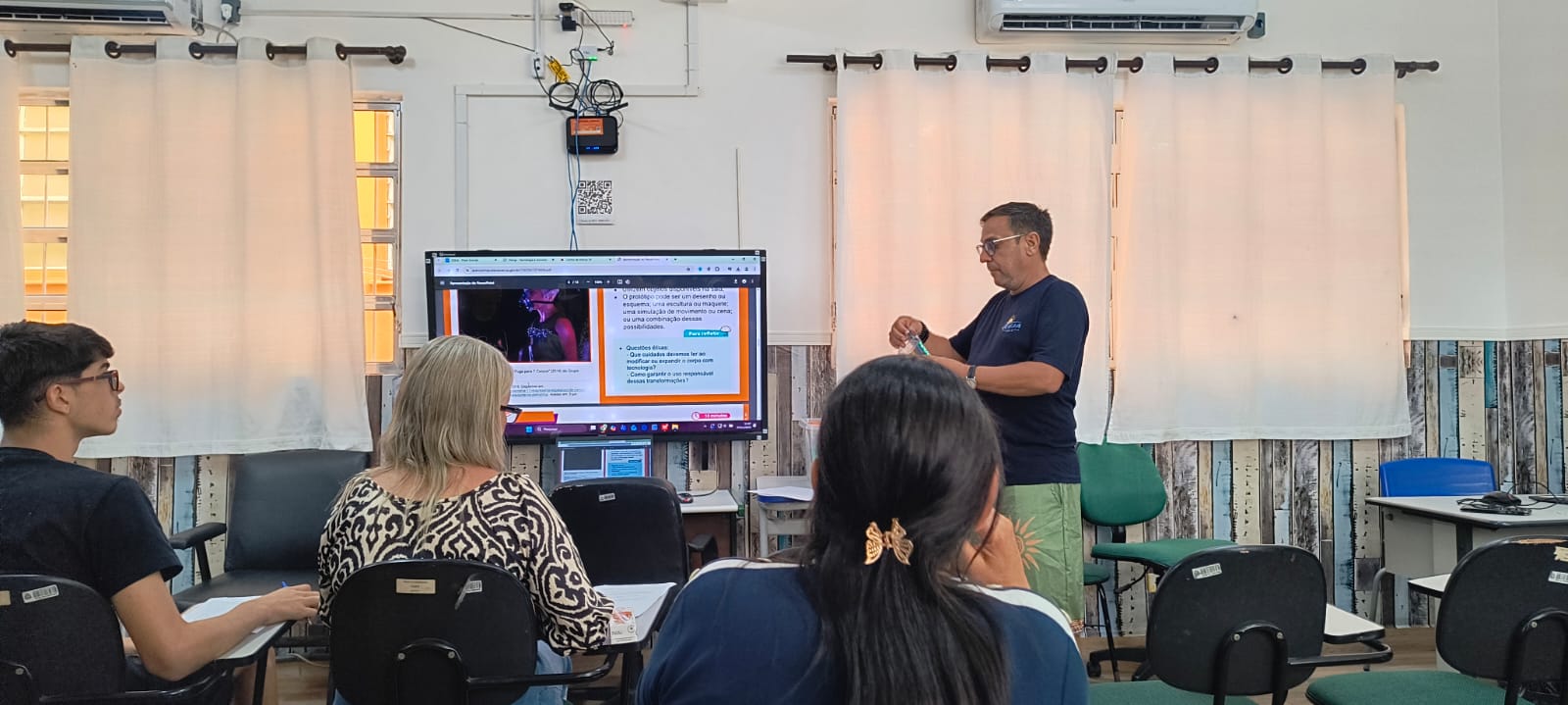 A oficina “ Dança, Tecnologia e Movimento” propôs uma experiência artística que explora as possibilidades expressivas do corpo em diálogo com recursos digitais. Ao longo das atividades, os participantes foram convidados a investigar como a dança contemporânea se relaciona com novas linguagens tecnológicas, criando composições que unem movimento, luz, som e projeções interativas. Prof. Hélcio.