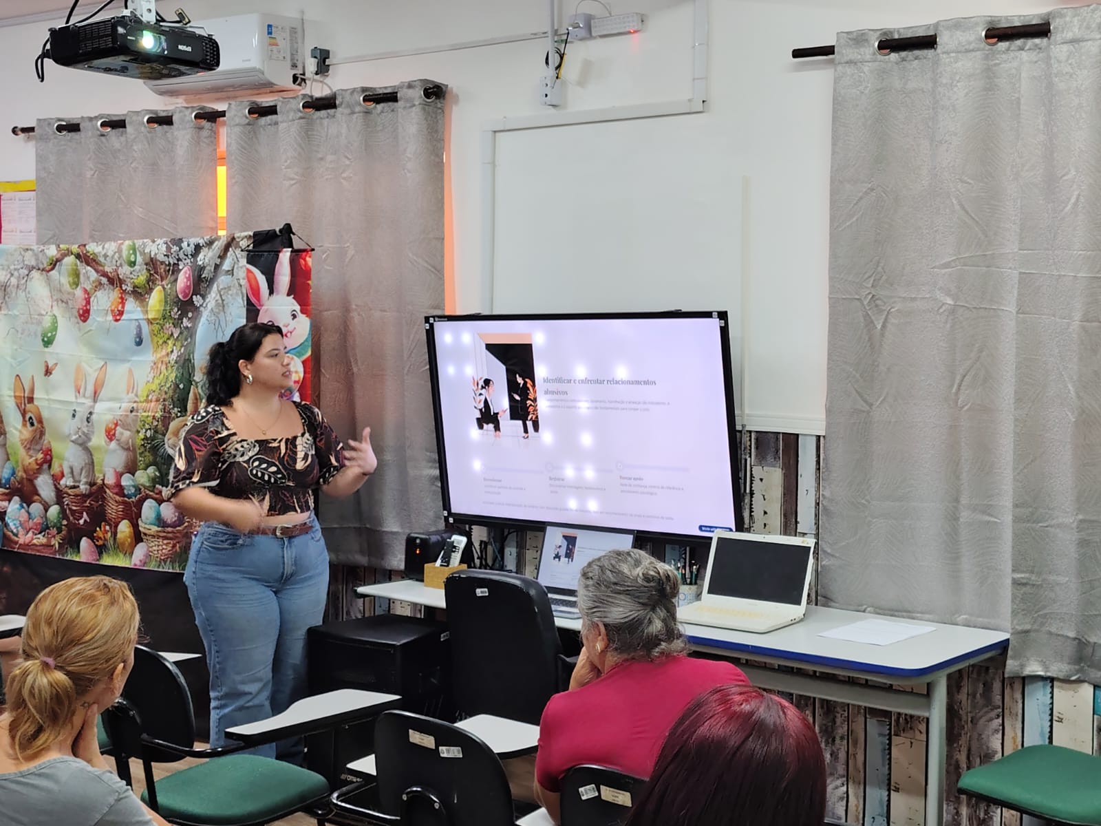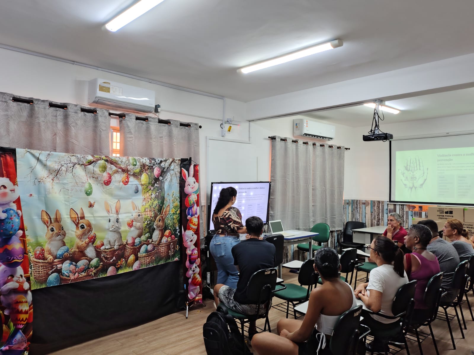 Nesse dia a Psicóloga Gabriela Benetti trouxe uma temática para uma roda de conversa com os estudantes sobre "O dia da Mulher". Os estudantes puderam colocar suas ideias sobre o tema e a Psicóloga Gabriela Benetti trouxe a visão da psicologia para complementar essas ideias.