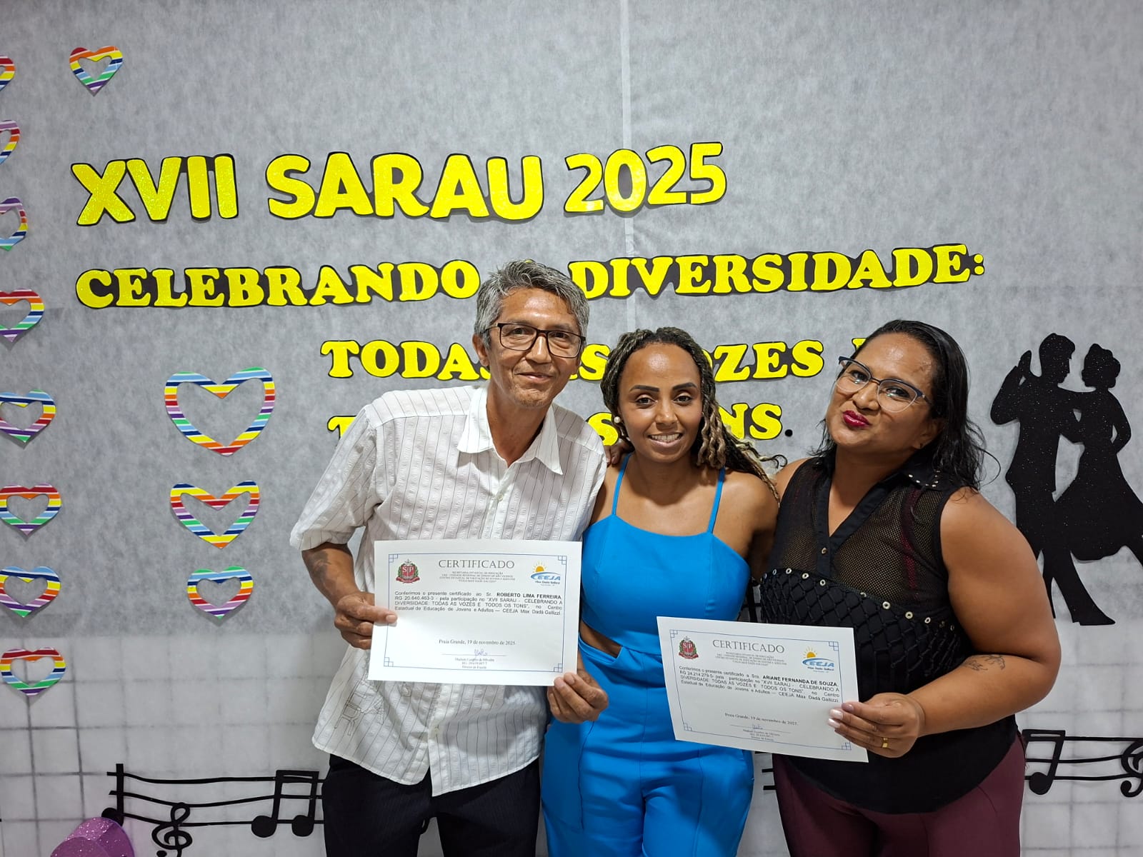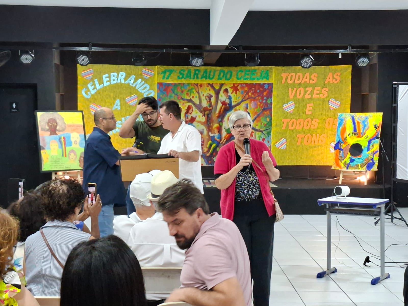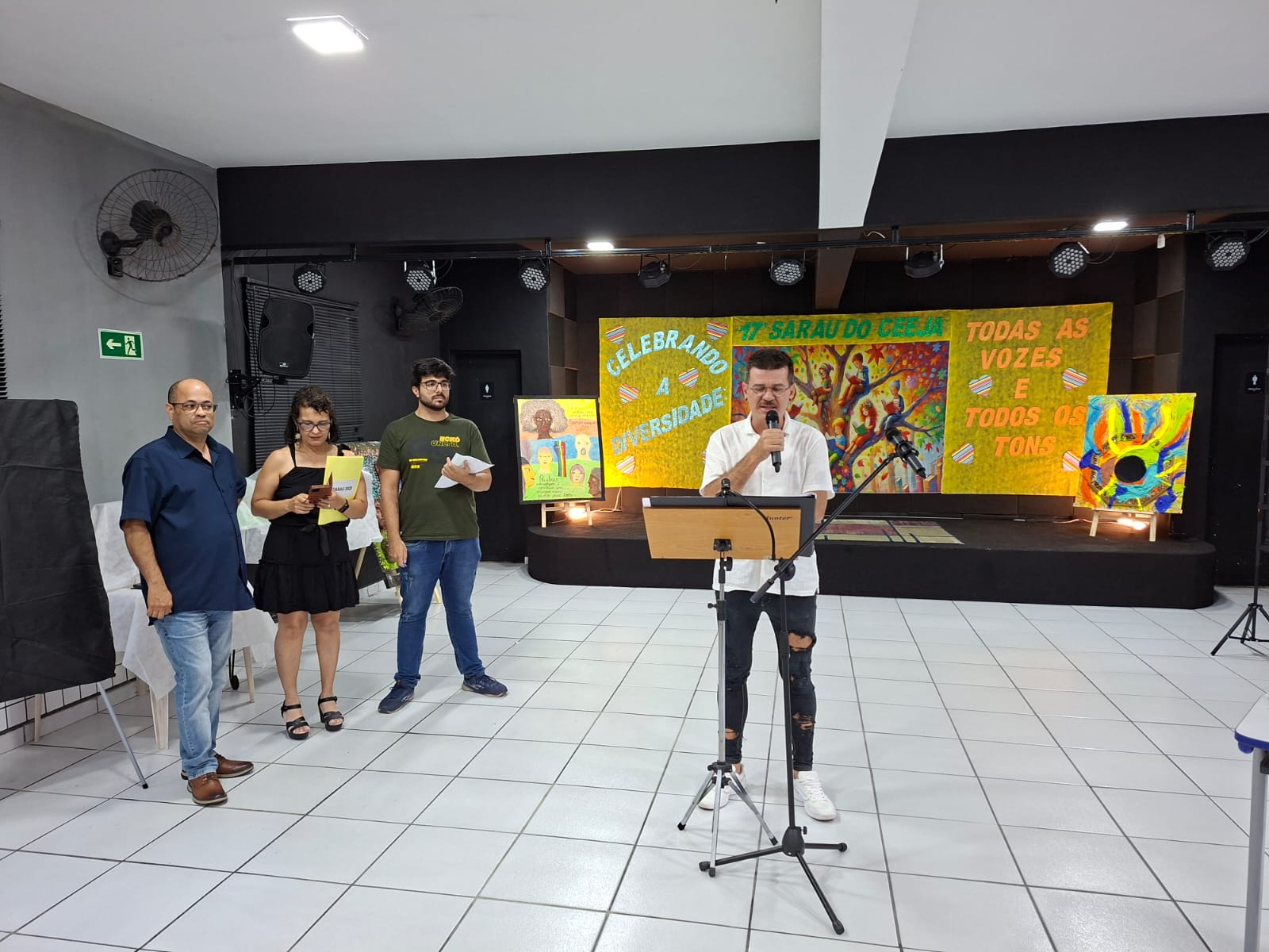 Foi um evento cultural maravilhoso! O título, "XVII SARAU DO CEEJA: Celebrando a diversidade: Todas as Vozes e todos os Tons", entregou uma noite de arte, inclusão e expressão, organizada pela Gestão Escolar e Professores do Centro Estadual de Educação de Jovens e Adultos (CEEJA) Max dadá Gallizzi.