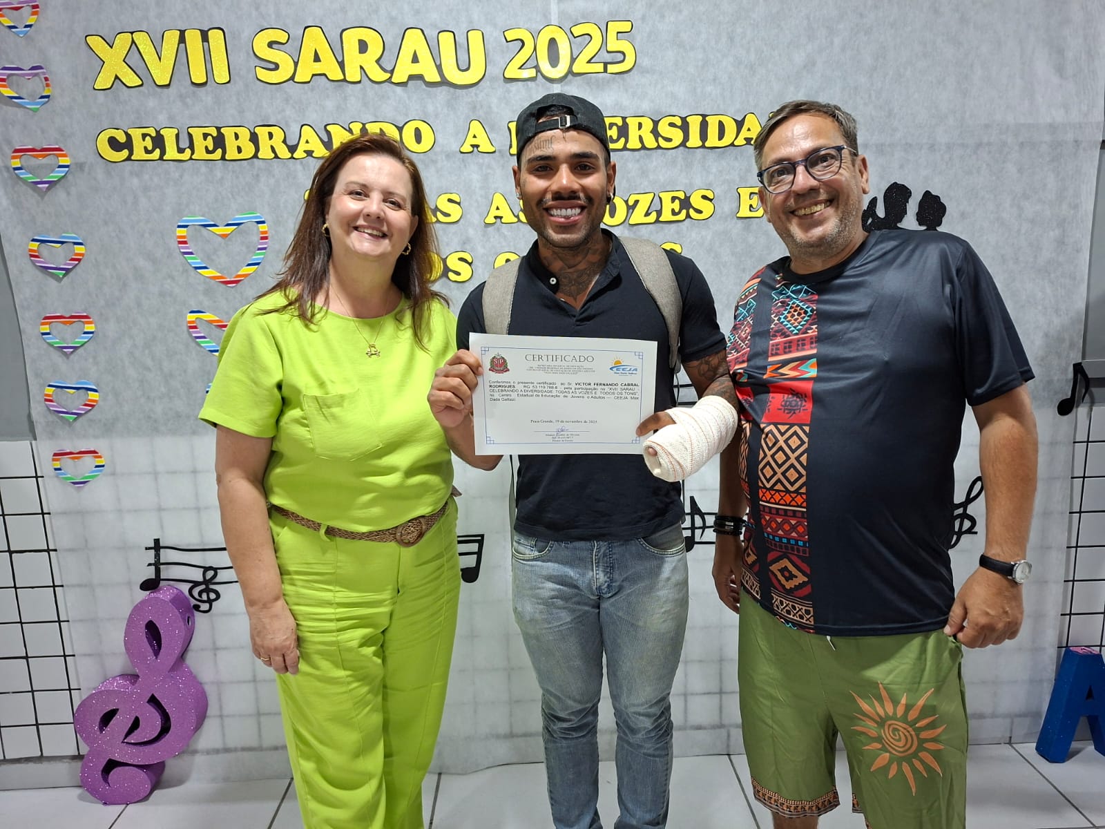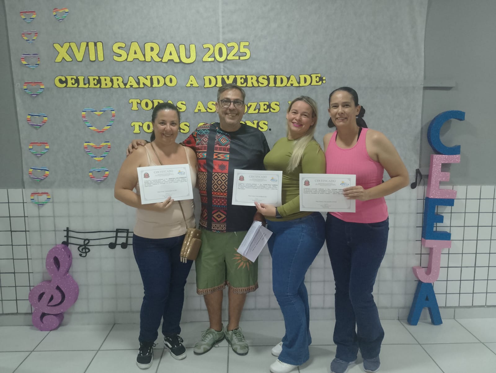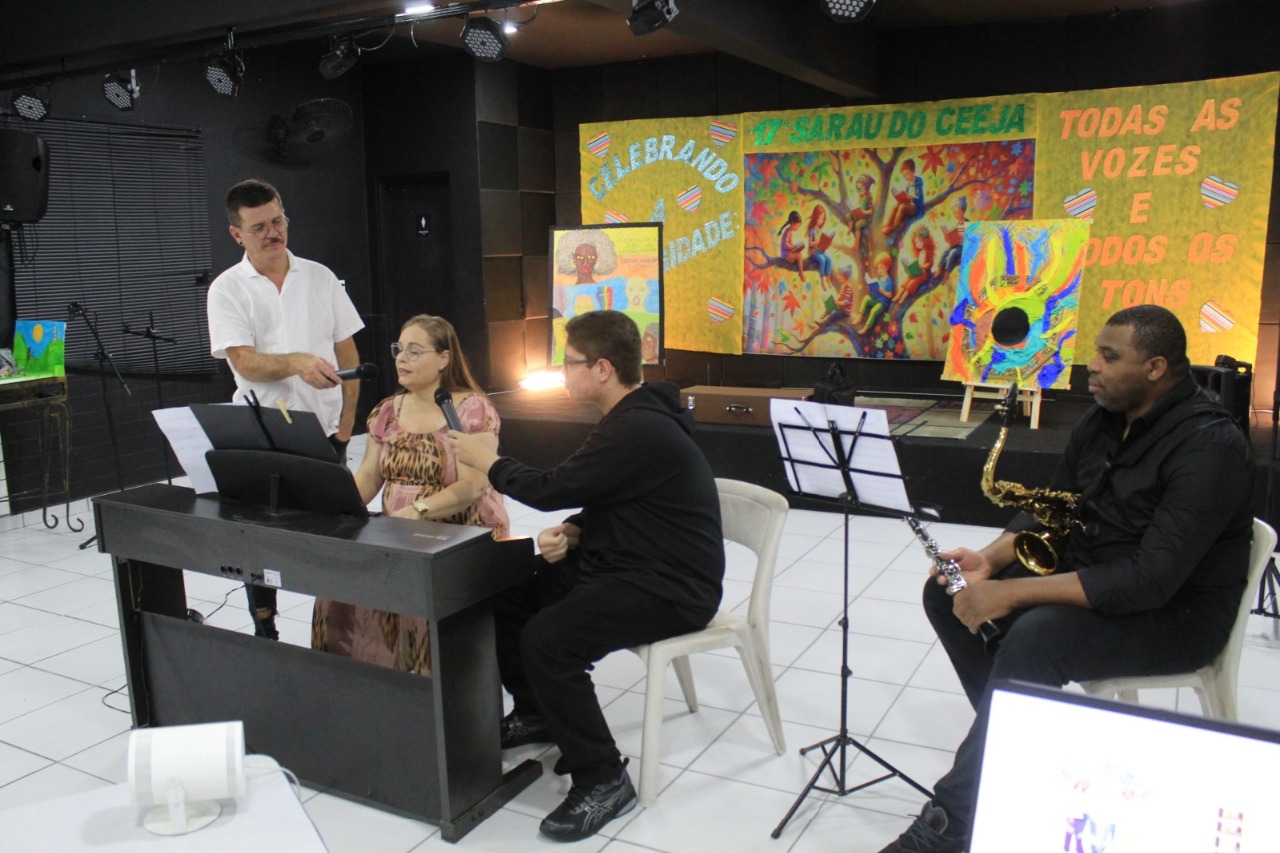 Foi um evento cultural maravilhoso! O título, "XVII SARAU DO CEEJA: Celebrando a diversidade: Todas as Vozes e todos os Tons", entregou uma noite de arte, inclusão e expressão, organizada pela Gestão Escolar e Professores do Centro Estadual de Educação de Jovens e Adultos (CEEJA) Max dadá Gallizzi.